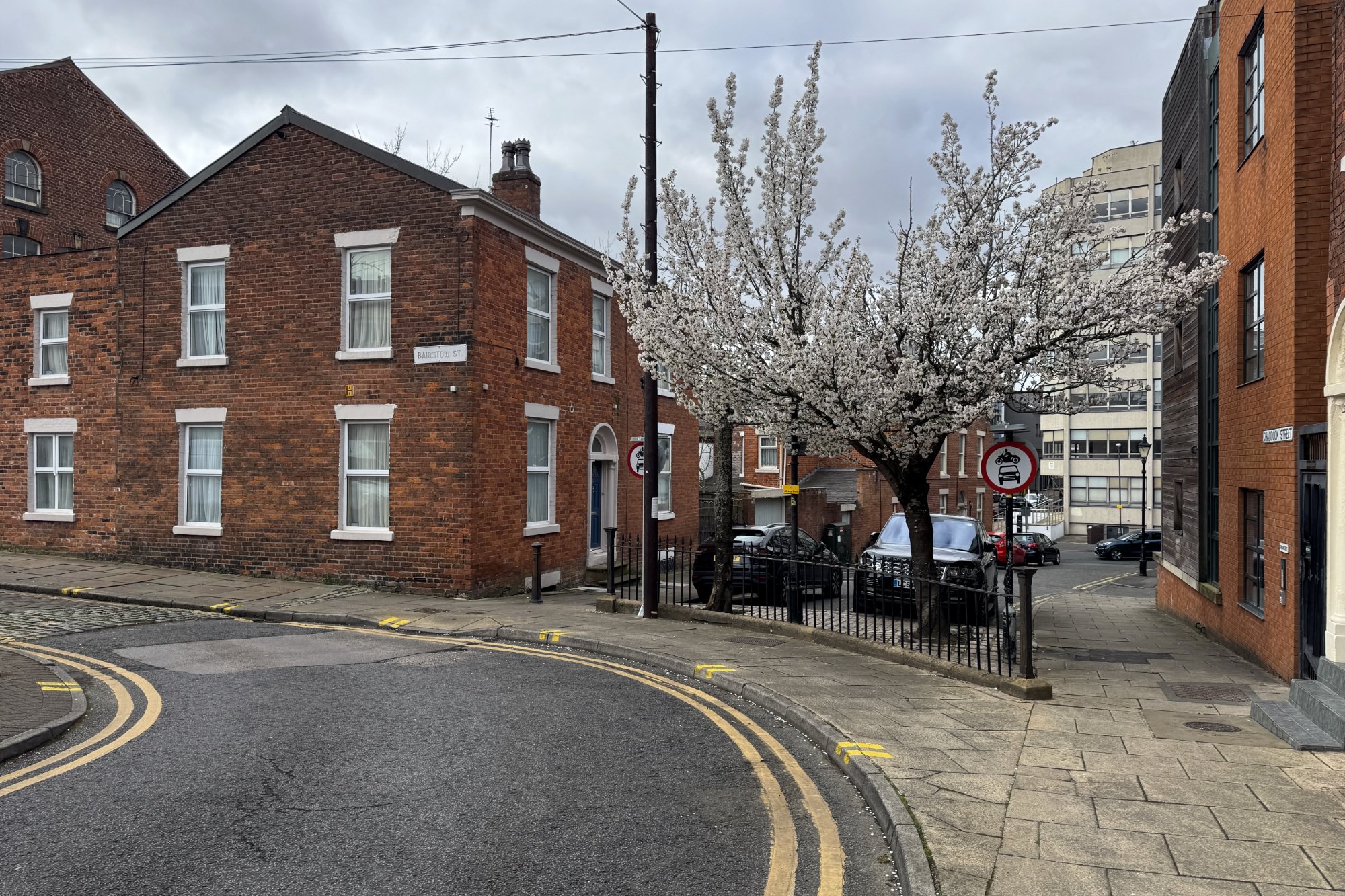 フライアゲートの坂を下っていくと、A59という大きな通りへ。フライアゲートとA59は平面交差となっていました。