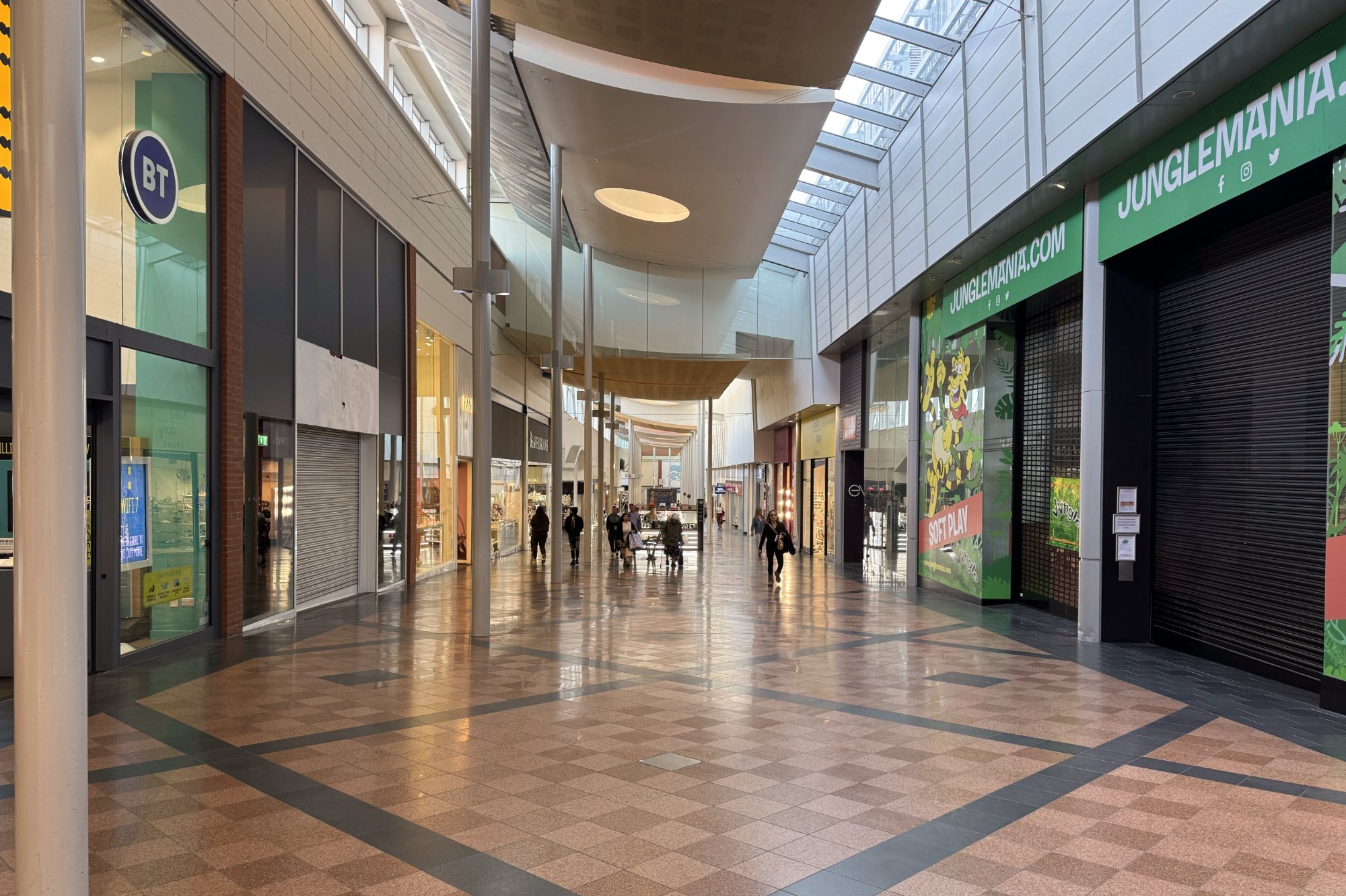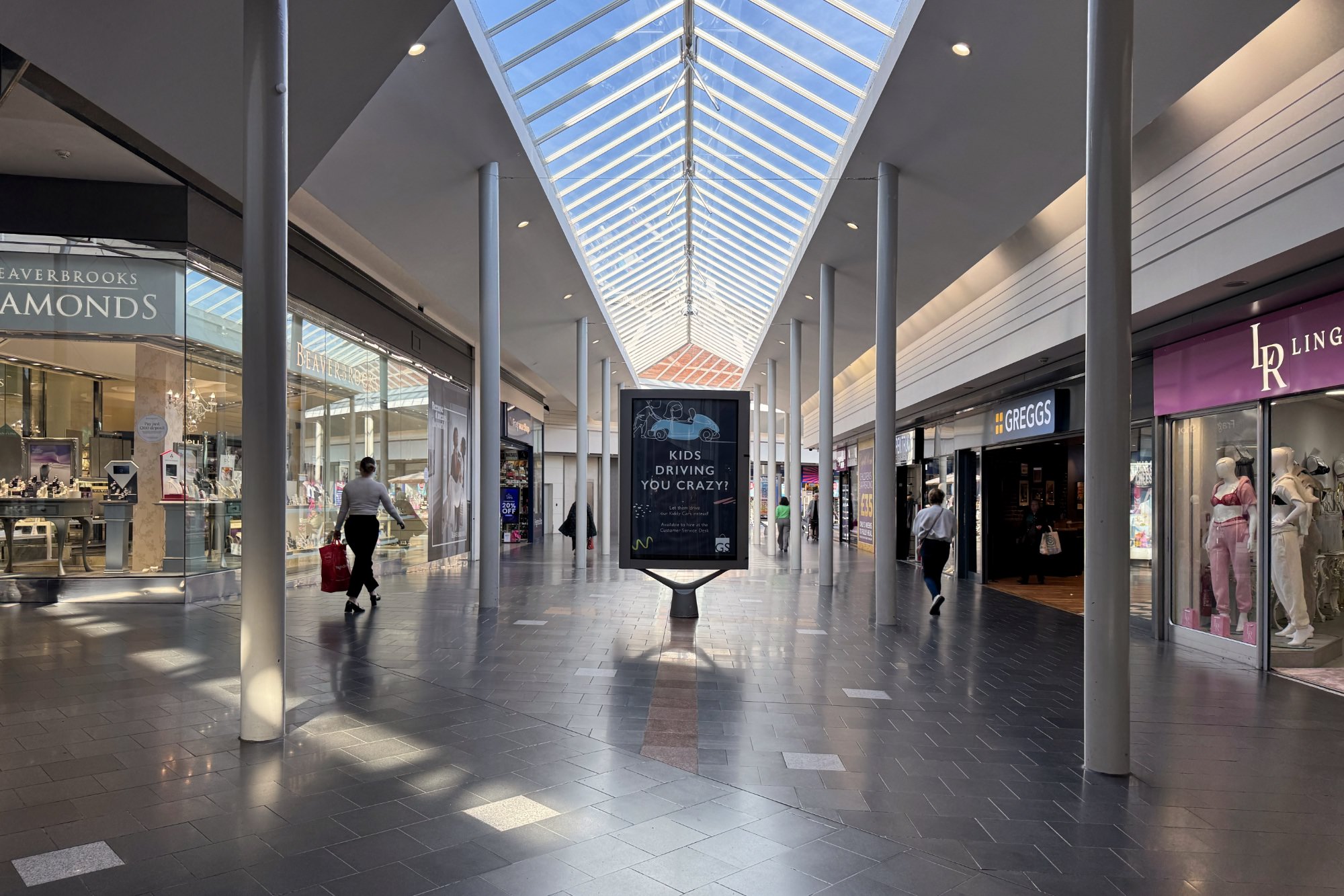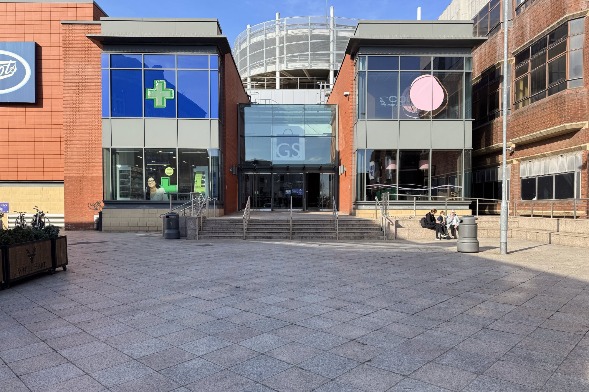 ゴールデン・スクエア・ショッピングセンターは規模の大きなショッピングモールですが、タウンセンターの中心部に面した南側(サンキー・ストリート(Sankey St)側)は、周りの建物のスケールにあわせて作られているようで、圧迫感を感じず、最初、外から見た時には、規模の大きなショッピングセンターになっていることに気づきませんでした。