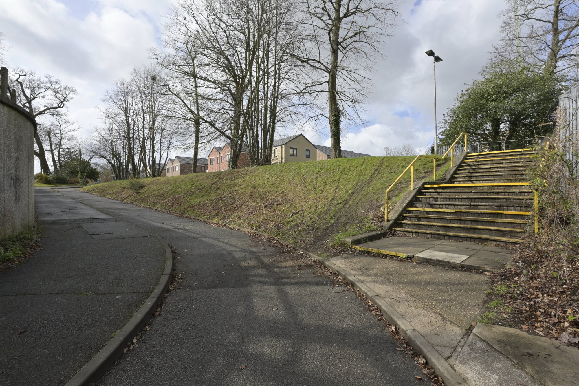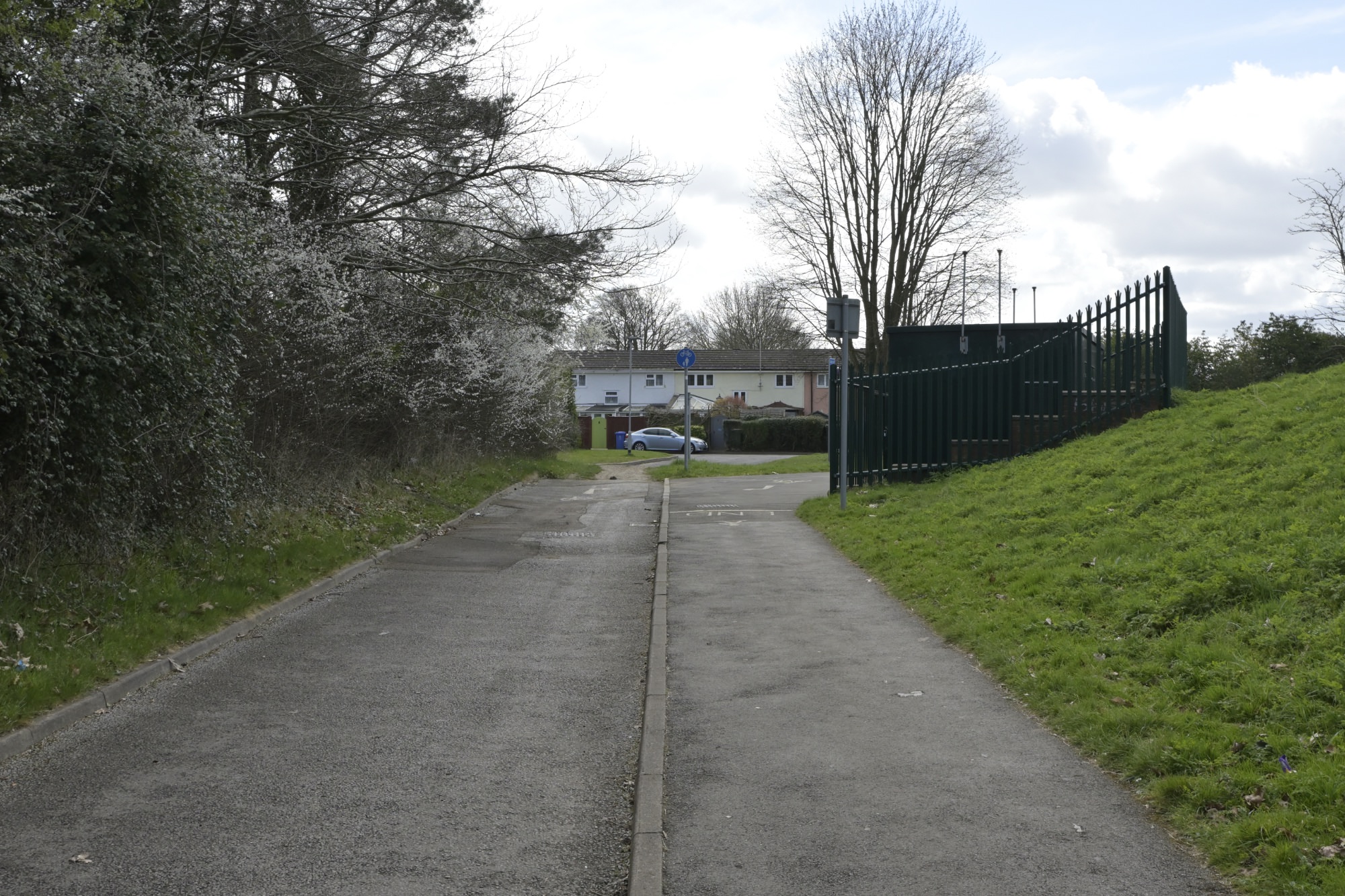 ザ・エルムス・パークの北側は低層の住宅地となっています。地図を見ると、いくつかの住宅がクルドサック(袋小路)の道路を囲むように配置されているようですが、公園と住宅の間には柵があり、直接住宅にはアクセスできないようでした。