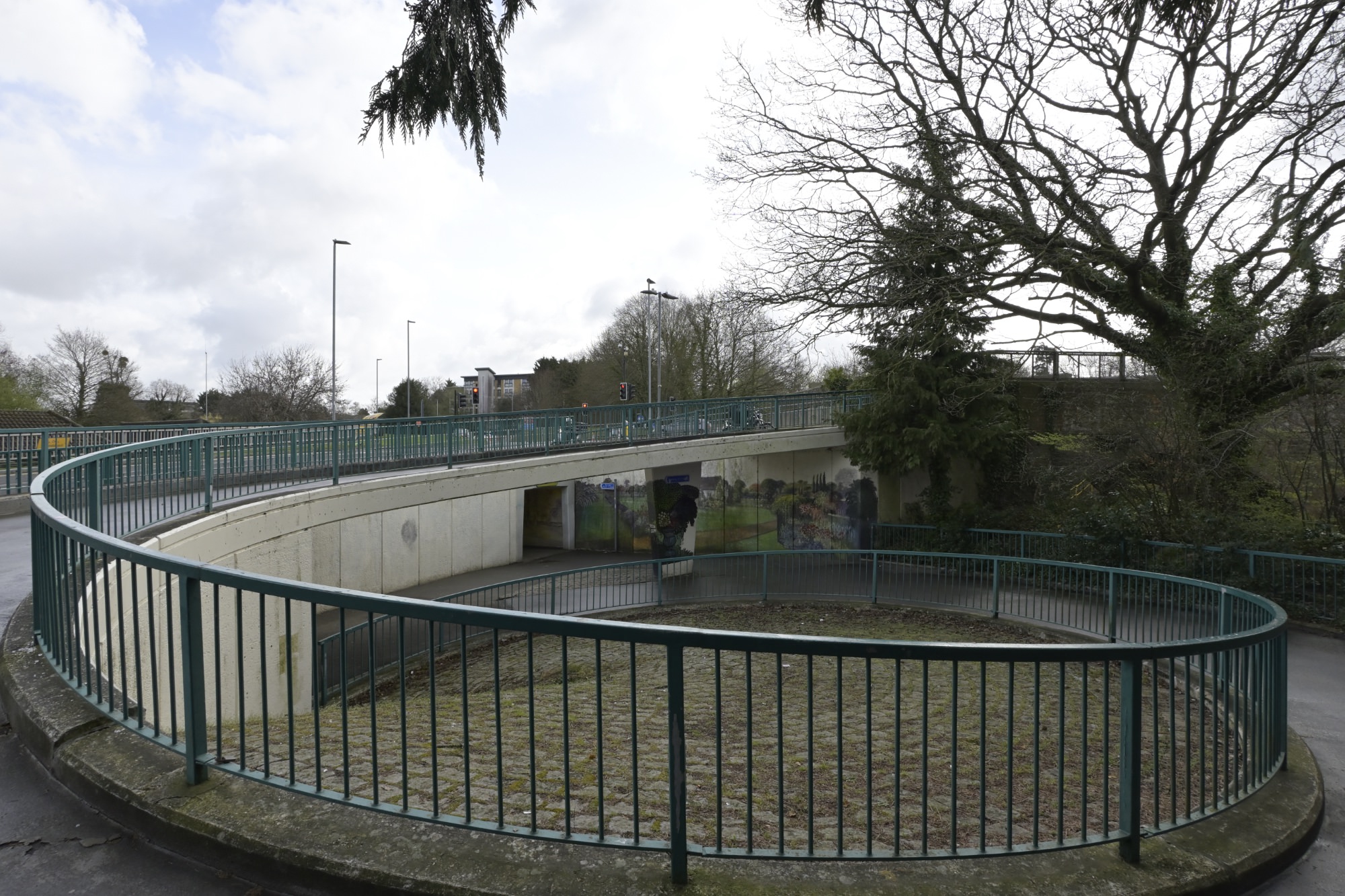 タウンセンターから続く歩行者専用道路はザ・リング(The Ring)の下を潜り、さらにラウンドアバウトの車道の下を潜っています。歩行者専用道路が車道の下を潜るアンダーパス部分には壁画が描かれています。ラウンドアバウト内には花も植えられており、公園のような場所になっていました。