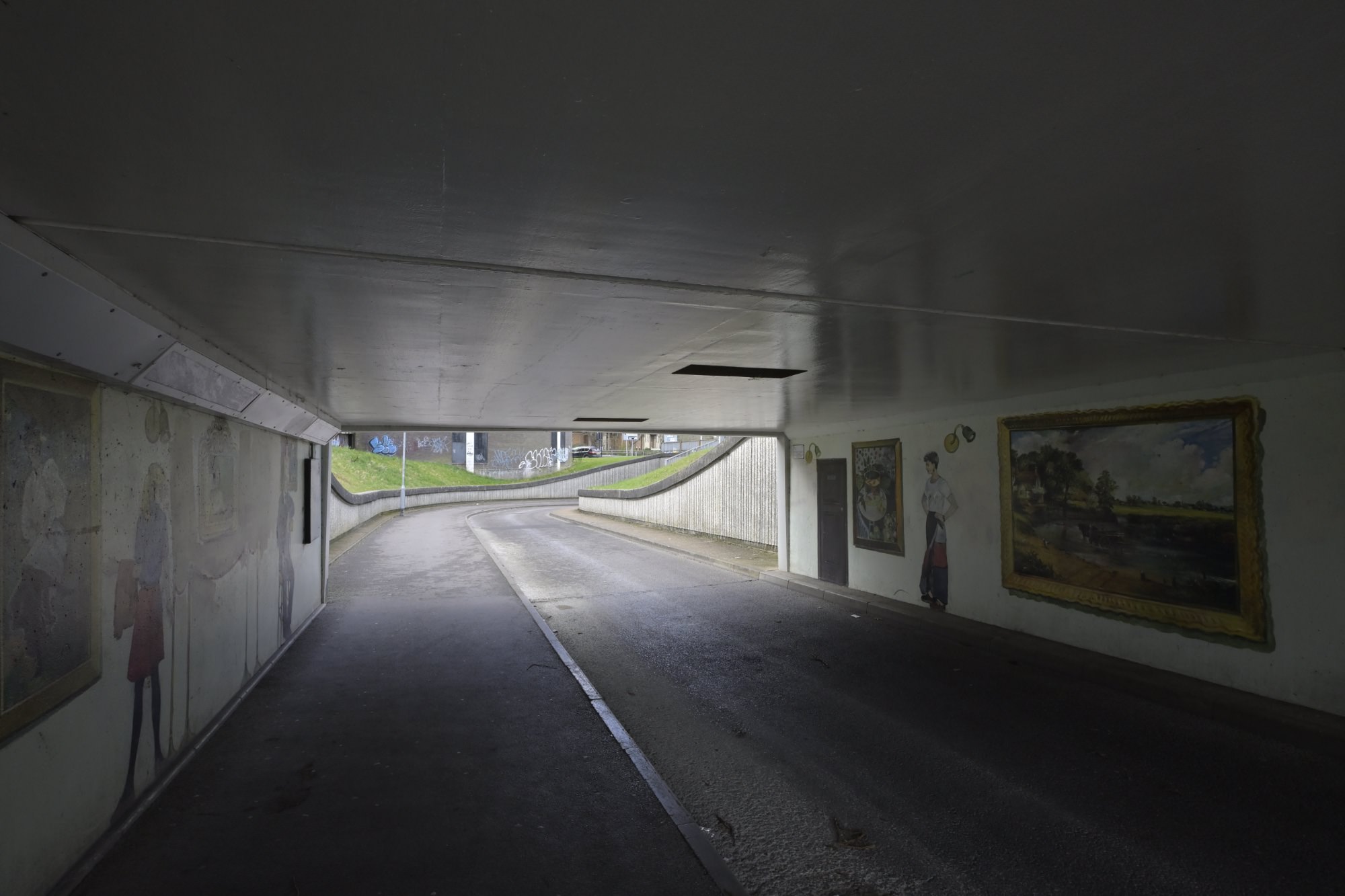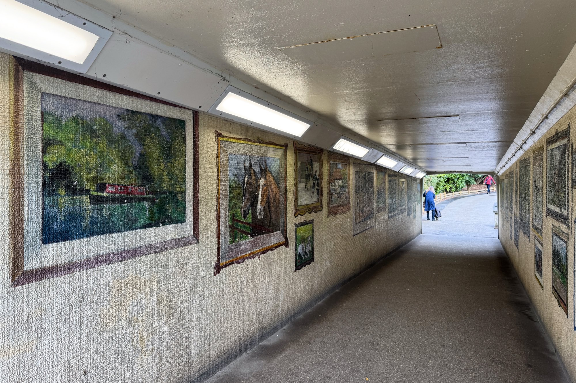 歩行者専用道路が、道路の下を潜るアンダーパス部分には壁画が描かれています。