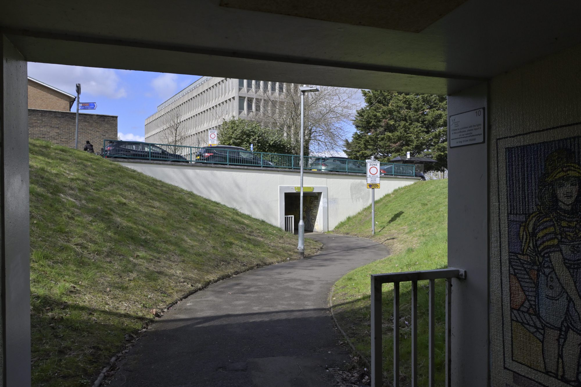 『ブラックネル・タウンセンター・ビジョン2032』*6)と呼ばれる資料には、ブラックネルは、第1期のニュータウンであるスティヴネイジ、ハーロウと同じように、自動車、歩行者、自転車を分離するという非常に特殊なアプローチを採用している(very particular approach to cars, pedestrians and cyclists)こと、タウンセンターから離れた位置に住宅地と業務地区を配置することでさらなる分離が実現されたが、これによって、ブラックネルは自動車に適した町になったと指摘されています。町が低密度であること、歩行者専用道路と自動車専用道路が車道の下を潜るアンダーパスの安全性への懸念から、徒歩や自転車での移動が魅力的ではなくなっているということです。こうした問題意識から、ブラックネルのタウンセンターをより徒歩や自転車でアクセスしやすいものに変えることが検討されています。