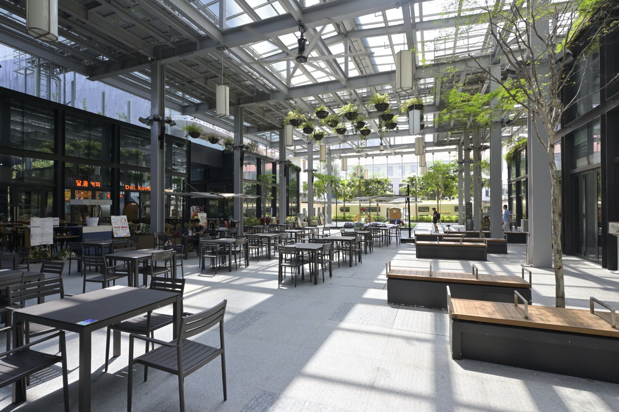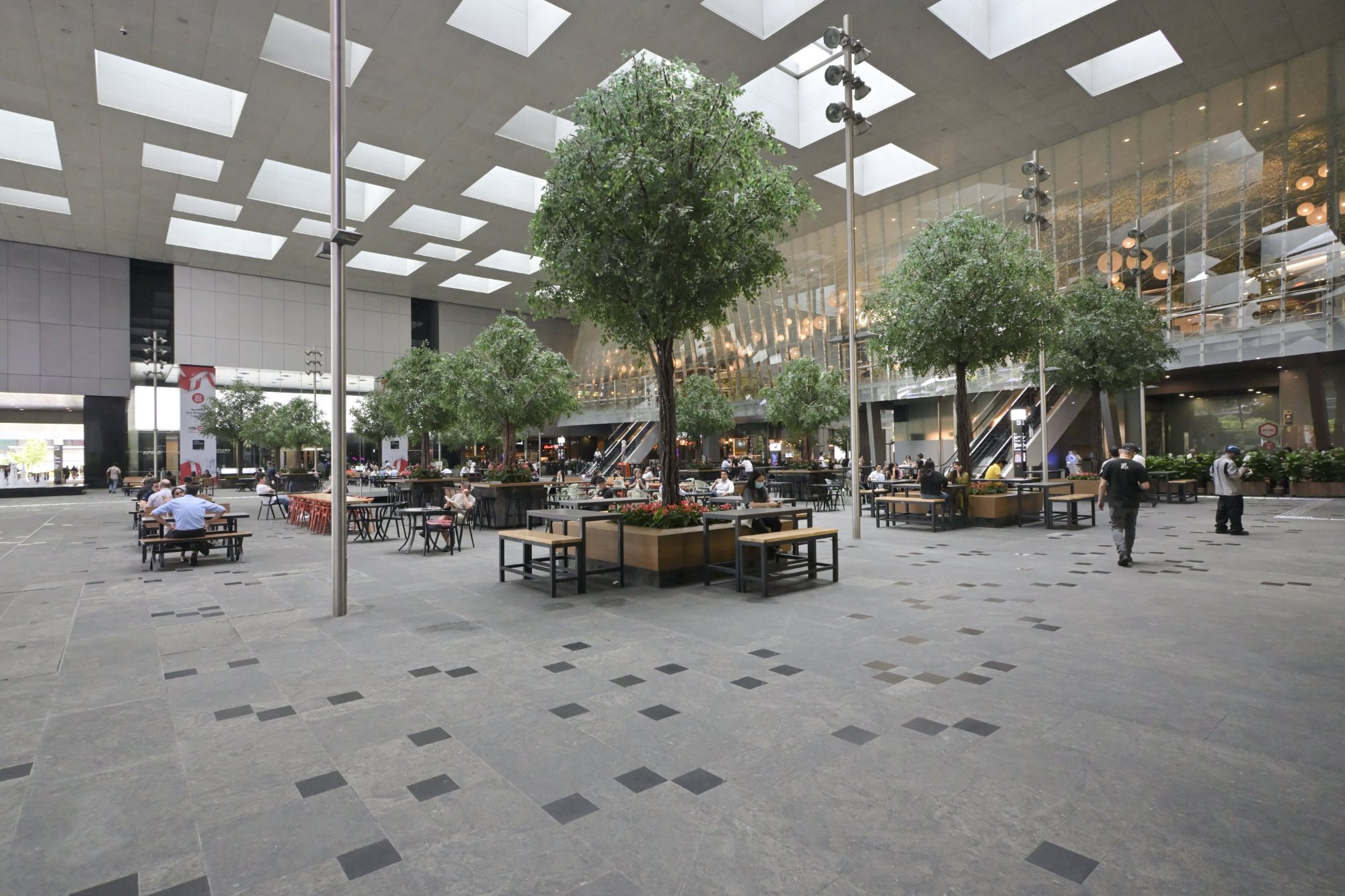 グオコ・ミッドタウン(Guoco Midtown)のPOPOSは、1階にもうけられています。面積は1,448m2。POPOSを囲むようにレストランやカフェがあり、屋外席としても利用されているようでした。