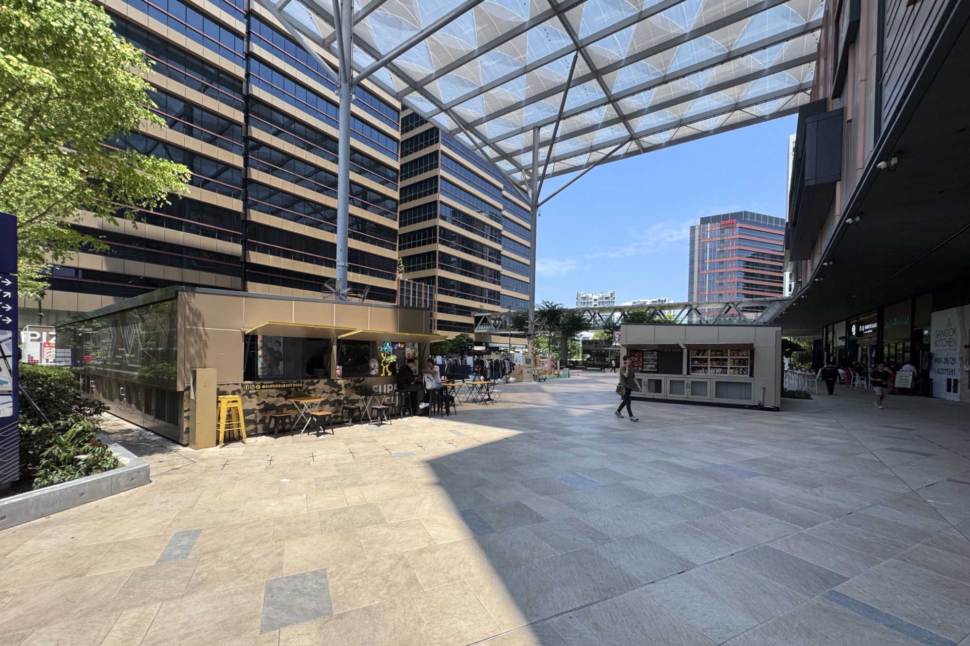 パヤ・レバー・クォーター(Paya Lebar Quarter)は、MRT東西線(East-West Line)・環状線(Circle Line)のパヤ・レバー駅(Paya Lebar Station)に直結する複合施設で、ショッピングモール、オフィス、住宅から構成。POPOSはショッピングモールとオフィス棟の間にもうけられた3,589m2と大きな空間で、POPOS内、そして、POPOSに面した部分にはカフェ、レストランがあります。訪れた時は、服飾品を売るポップアップストアも開かれていました。