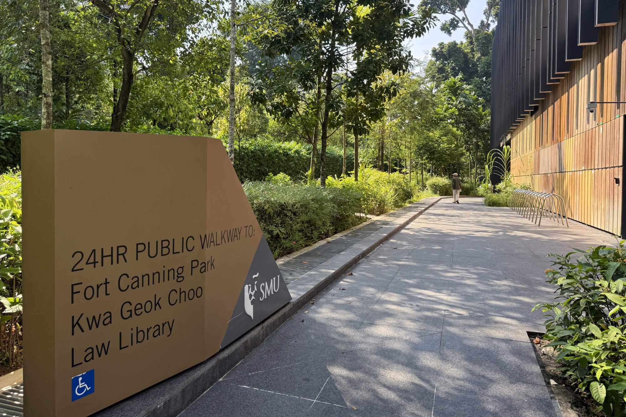 シンガポールマネジメント大学(SMU)はダウンタウンに立地する大学で、校舎の2ヶ所がPOPOSになっています。POPOSの1つは、AS3と呼ばれる校舎にもうけられています。校舎は、すぐ西にあるフォート・カニング公園(Fort Canning Park)への24時間の通り抜け通路として開放されており、通路の途中に、POPOSになっている広場があります。
