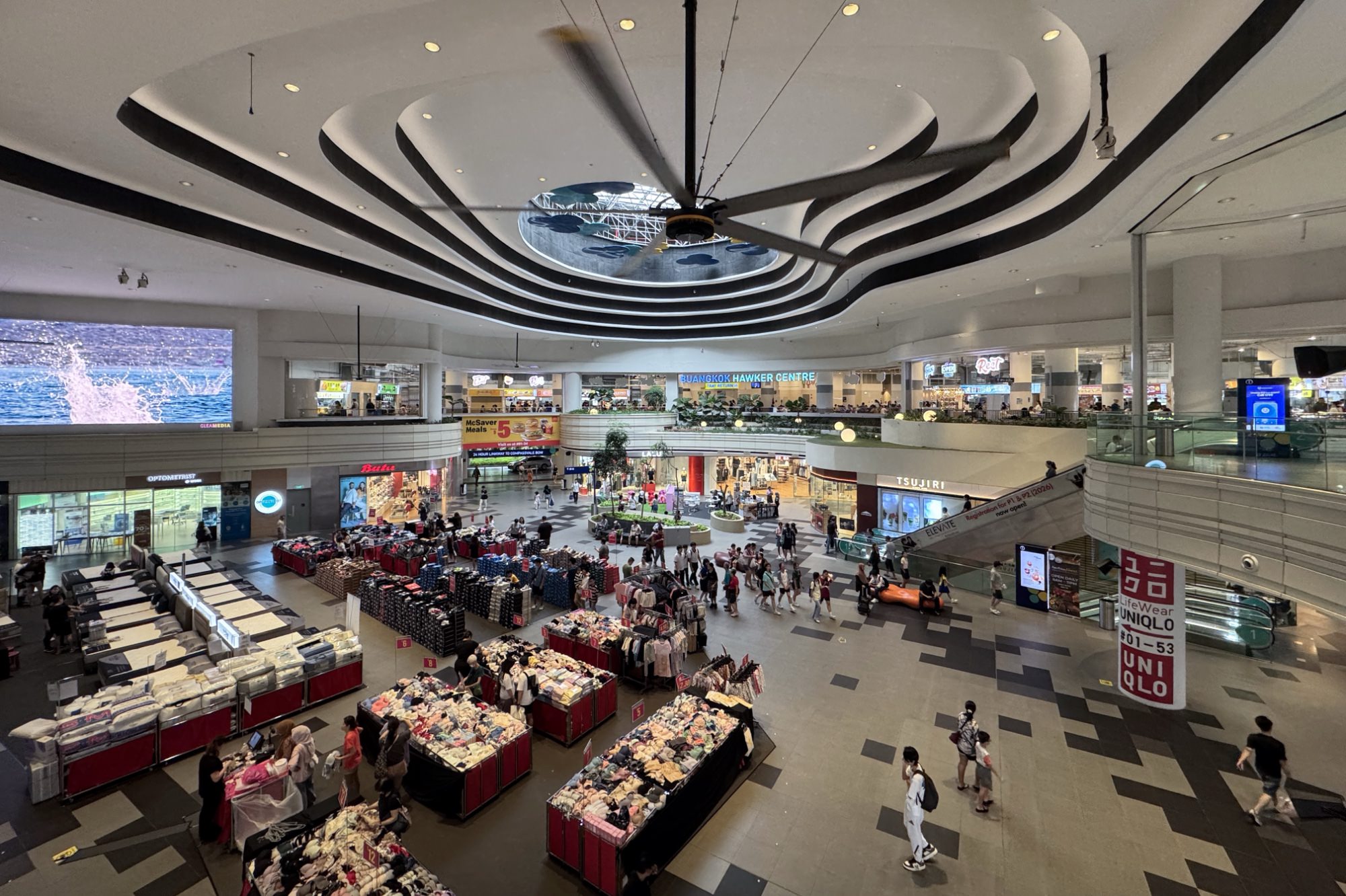 センカン・グランドモール(Sengkang Grand Mall)は、HDBが開発する北東部のセンカン(Sengkang)に位置。MRT北東線(North-East Line)のブアンコック駅(Buangkok Station)と、ブアンコック・バス・インターチェンジ(Buangkok Bus Interchange)に直結しています。上層階は住宅となっています。1階の広場がPOPOSで、駅やバス・インターチェンジへの通り道でもあり、多くの人々を見かけました。POPOSを見下ろす2階には、ホーカーセンターがあります。