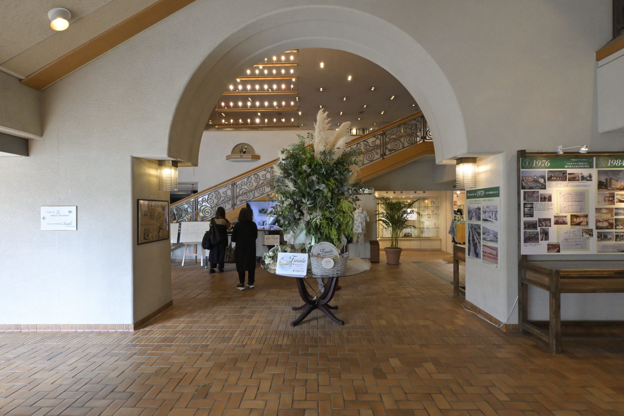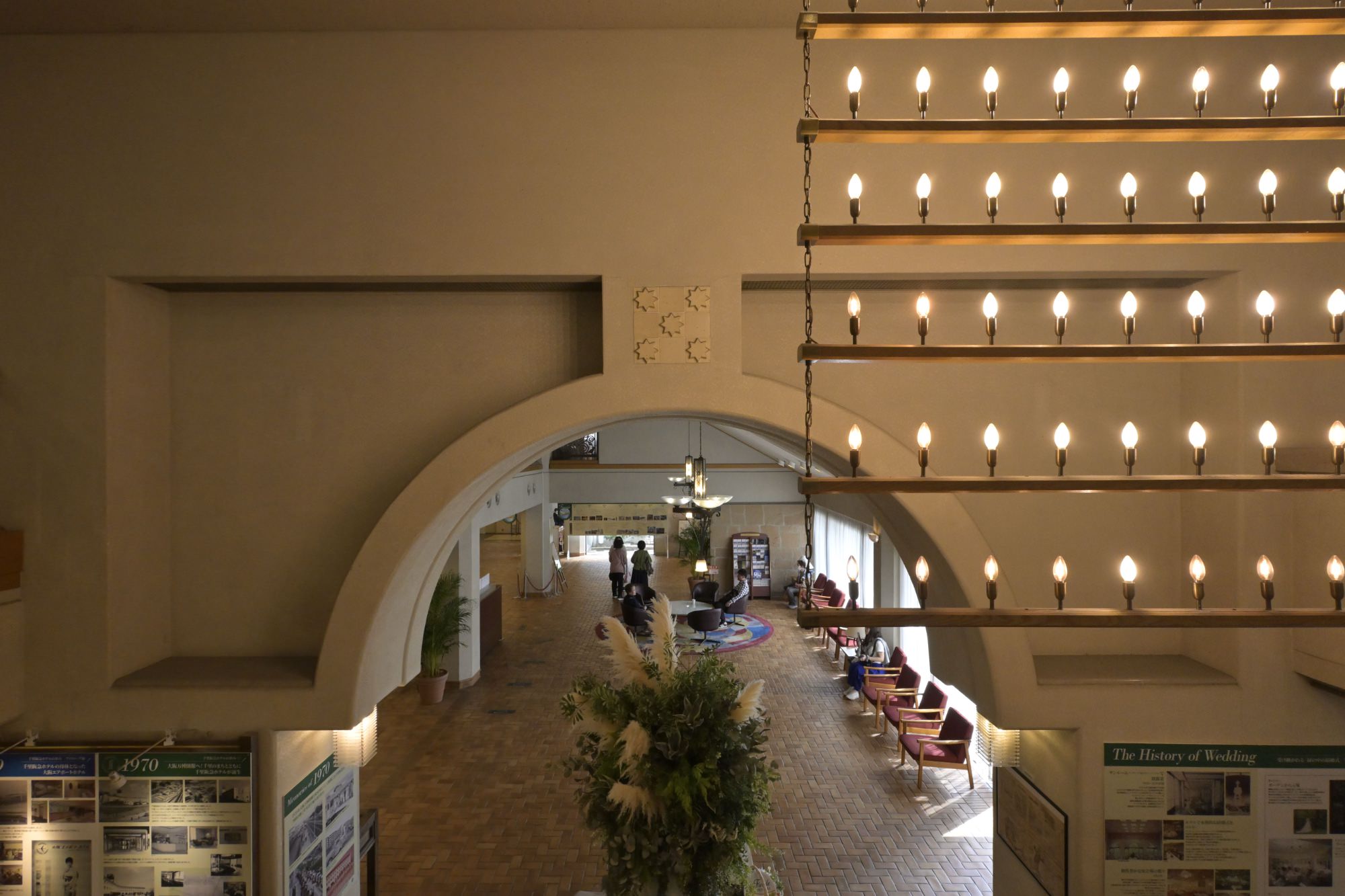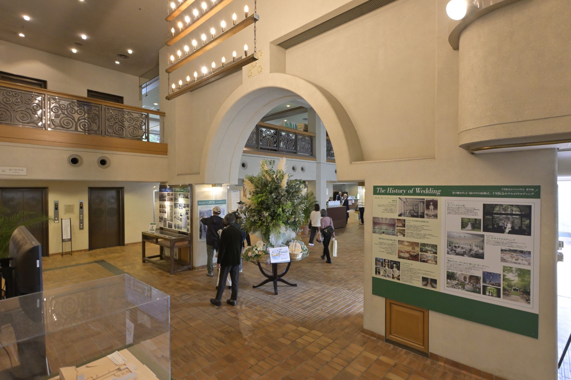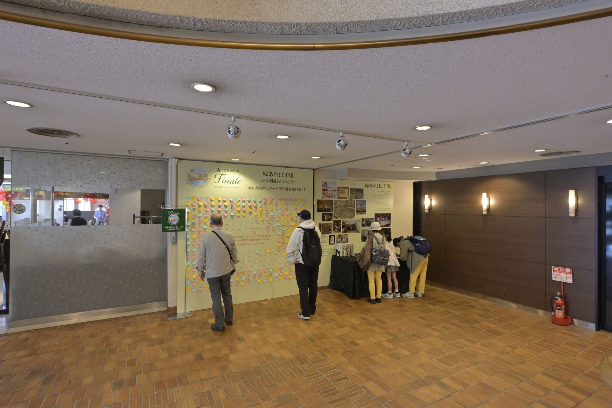 2025年12月26日からは、1階フロント前スペースに、56年間の歴史を紹介するメモリアルブースが設けられました。メモリアルブースでは、千里阪急ホテルの母体となった大阪エアポートホテル、開業当初の千里阪急ホテル、千里阪急ホテルの変化、結婚式、大阪万博の思い出など、56年間の歴史を伝える数々の貴重な写真の展示、千里阪急ホテルと千里ニュータウンの年表が掲示。「みんなのメッセージでご縁を繋げよう!」という、訪れた人が思い出を付箋に書いて、パネルに貼り付けていくことのできるコーナーももうけられています。